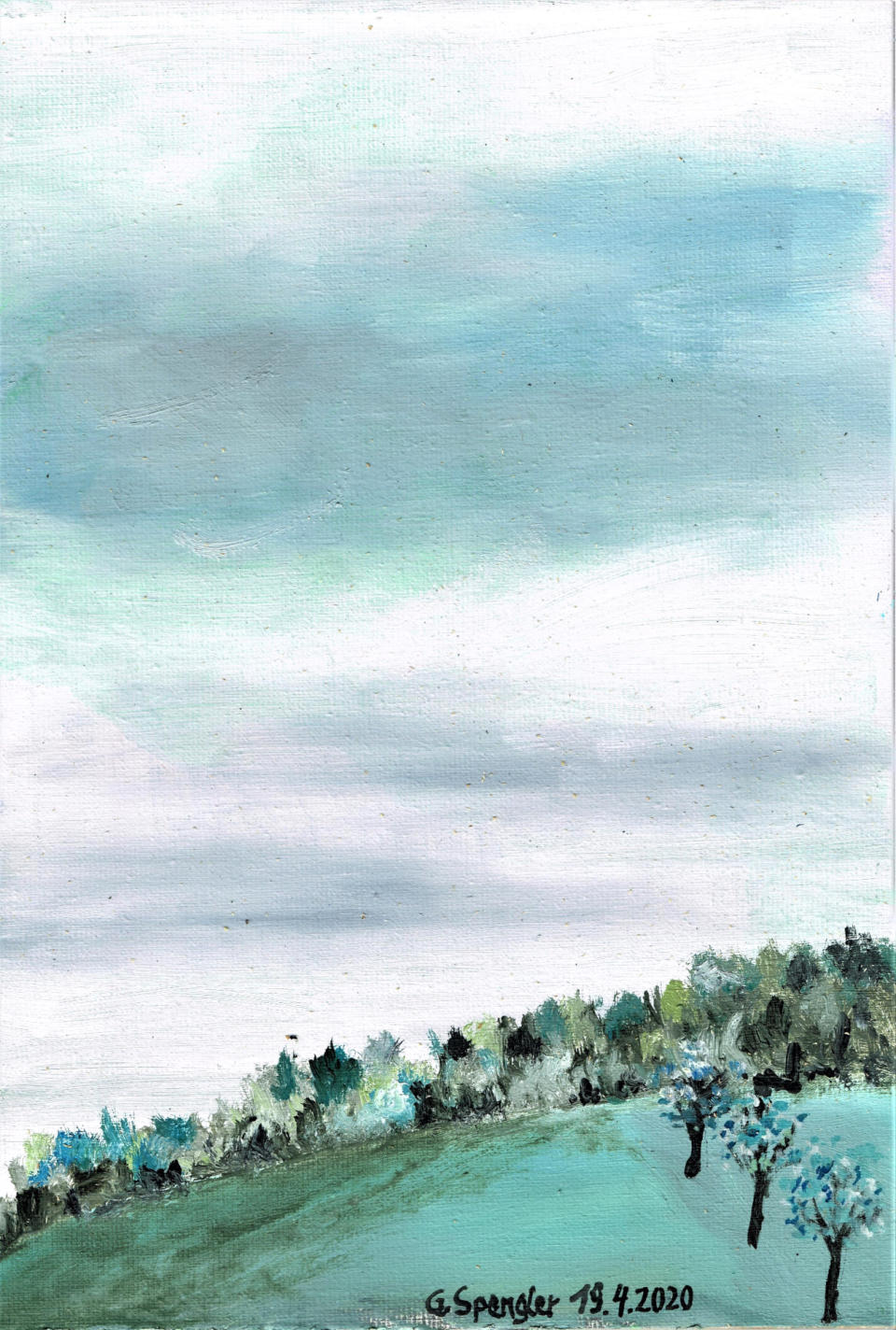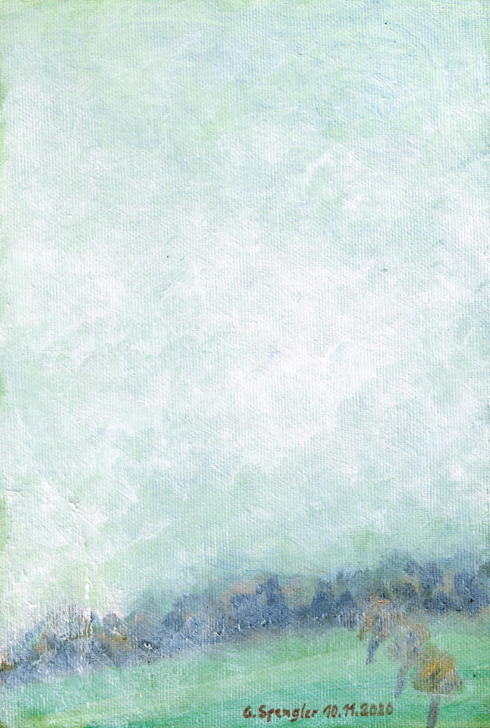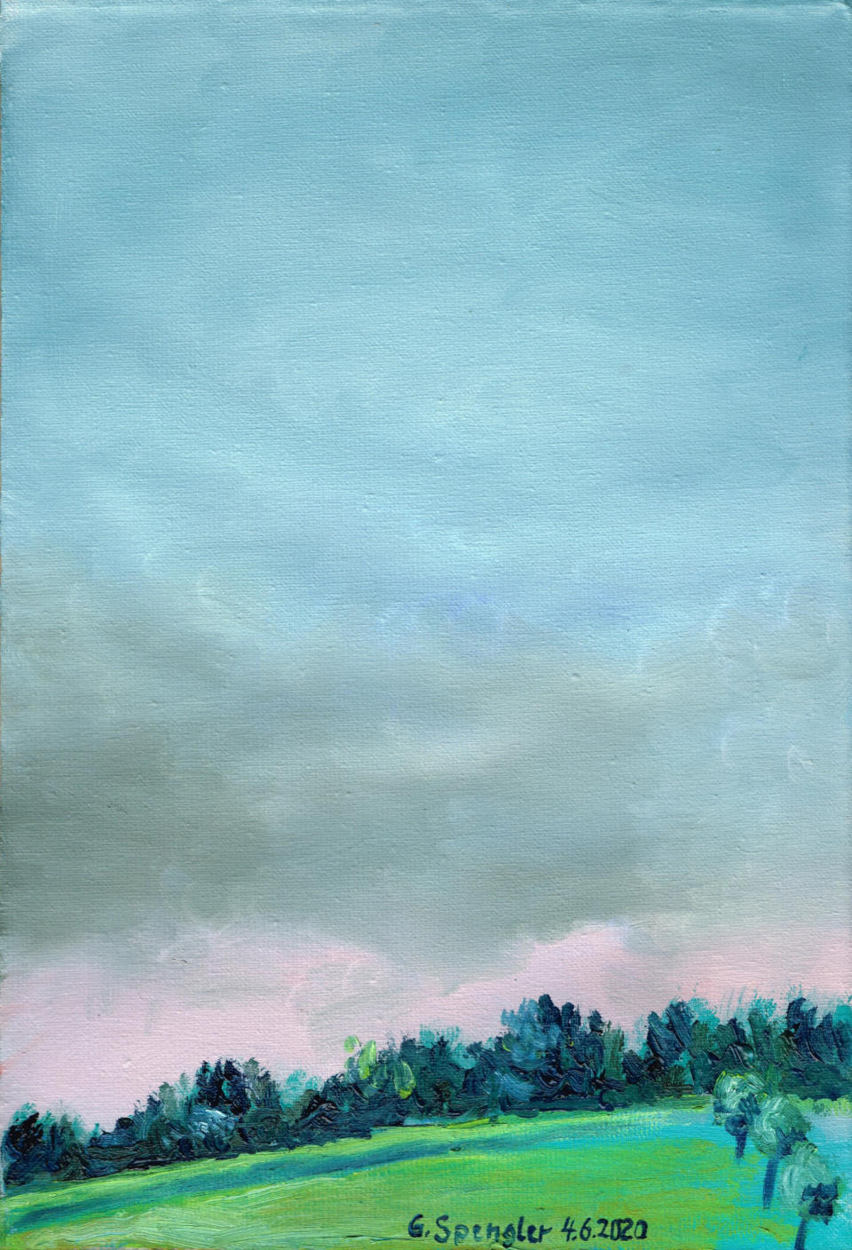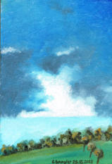 ein kleines Bild (17 x 25 cm - Öl auf Leinwand) wird gemalt. Von meinem Atelier aus schaue ich nach Westen, über