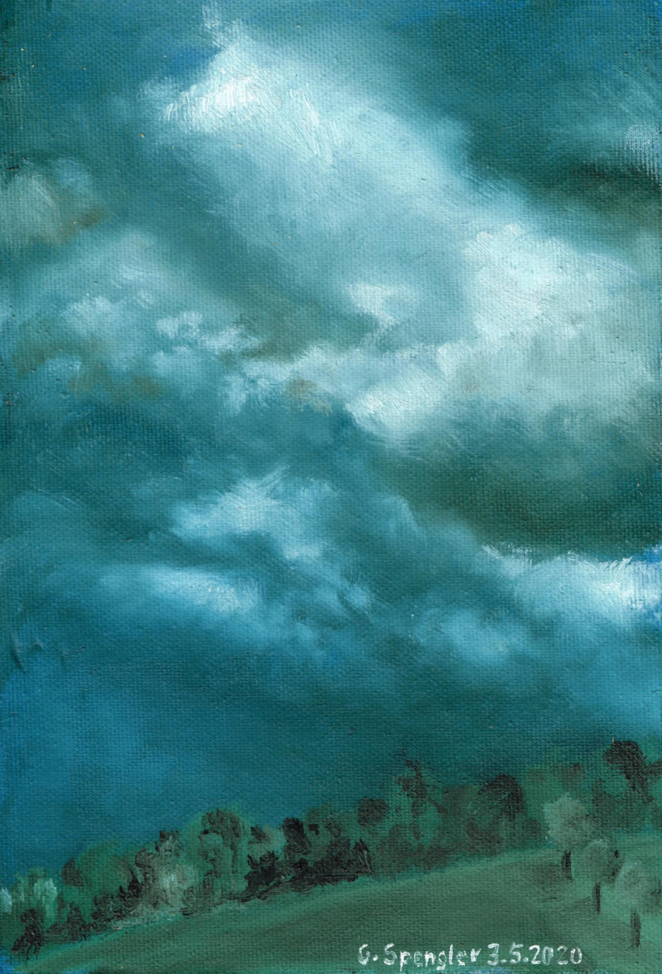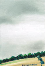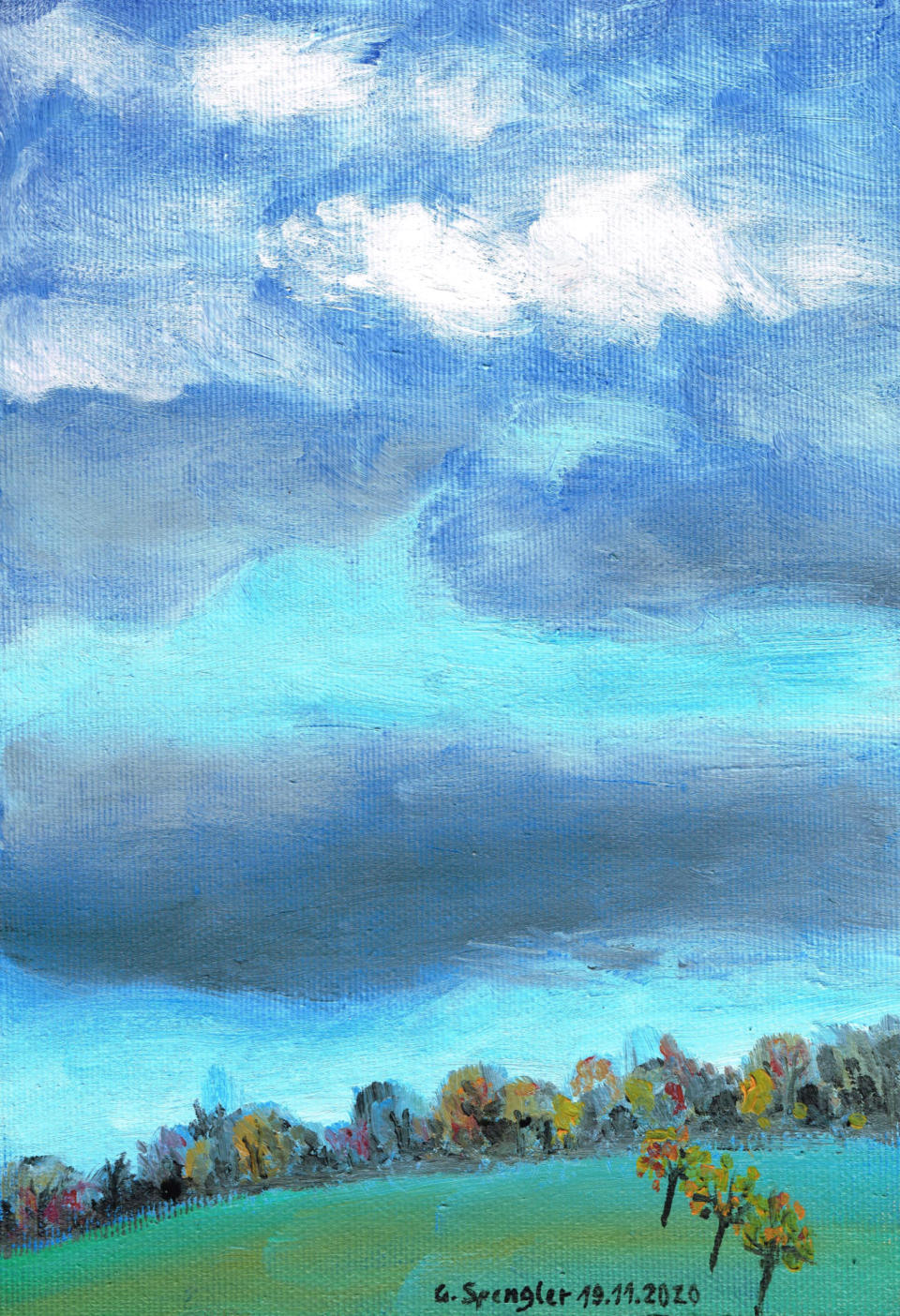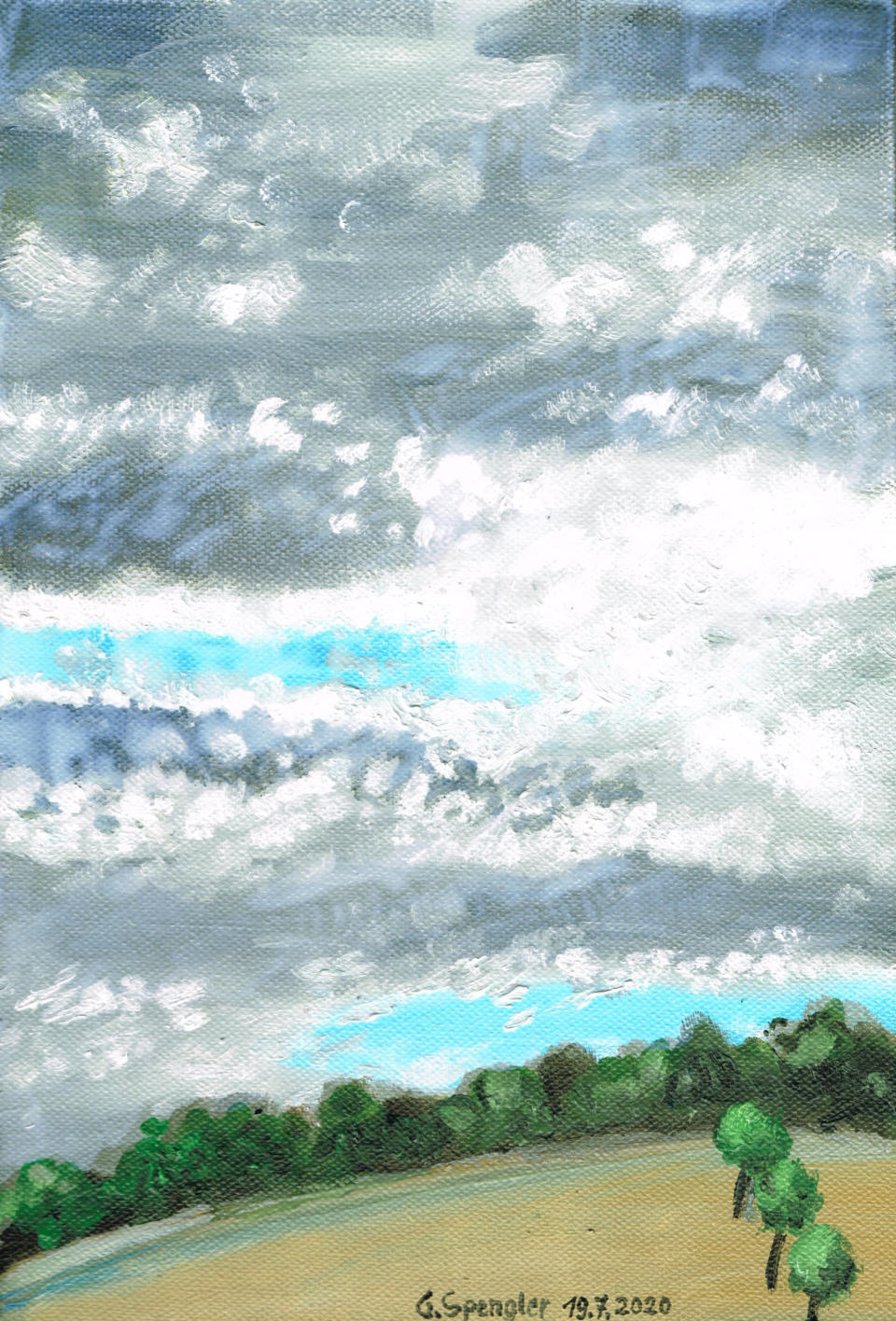 ein kleines Bild (17 x 25 cm - Öl auf Leinwand) wird gemalt. Von meinem Atelier aus schaue ich nach Westen, über